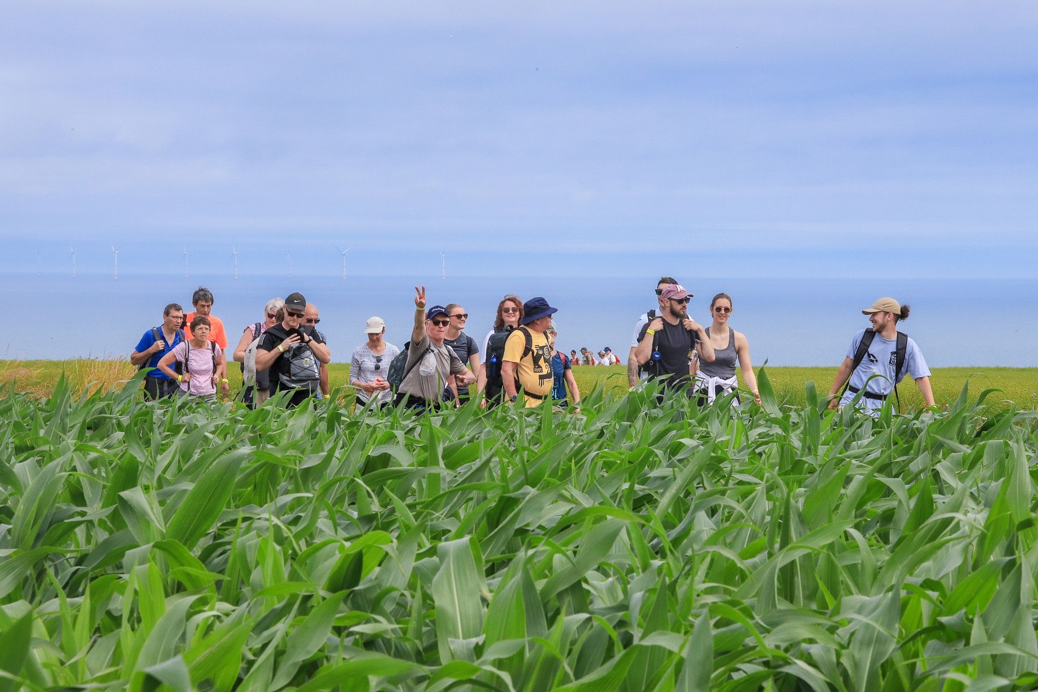 Tout au long du parcours, les gambadeurs ont découvert la côte normande, des lieux étapes majeurs comme la Chapelle de Grainval ou la Ferme de la Vue du Coquet, mais aussi les champs de lins et de blés qui ont ponctué leur arrivée jusqu’au Château pour la grande guinguette dans le parc.